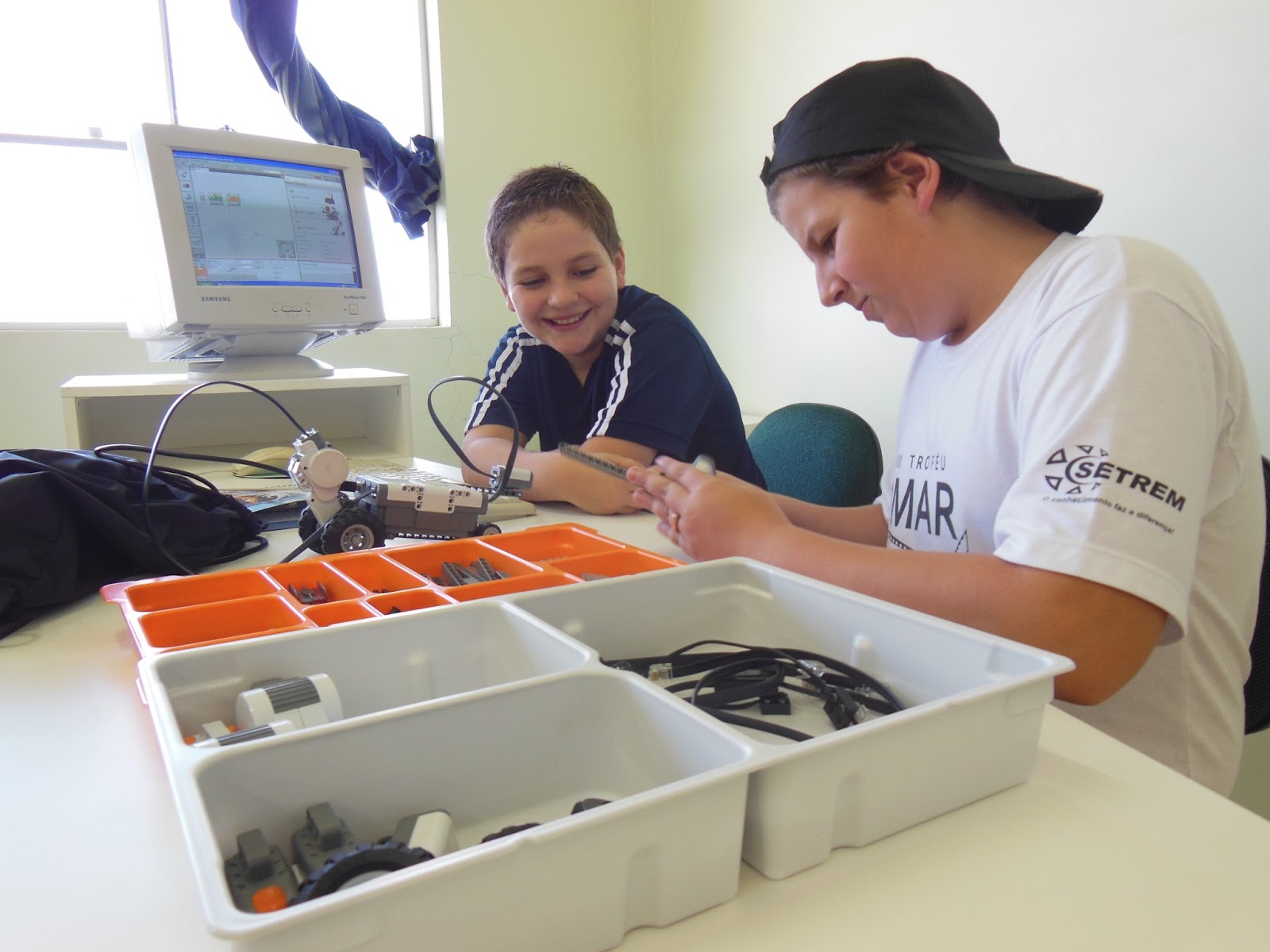 No segundo encontro dos estudantes do Clube de Robótica a professora apresentou o software Mindstorms NXT 2.0, dando continuidade as atividades iniciadas no encontro anterior, após a apresentação do softwares os estudantes puderam iniciar as programações dos motores, sons, tela e sensores, após cada uma das programações fizeram os testes para verificar a funcionamento das mesmas nos robôs.